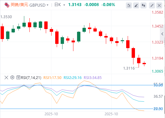 受美元全面走强的压力,英镑/美元周三连续第三天收于负值区域。该货币对在周五欧洲早盘保持相对平静,交投于1.3150下方,周跌幅约为1.3%。