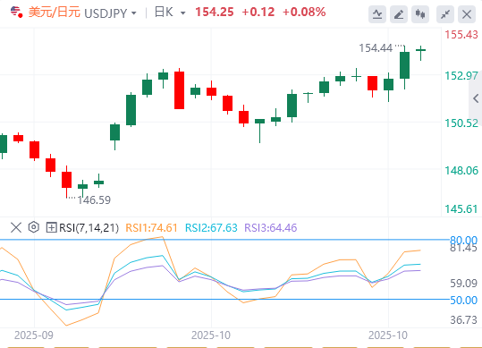 日本周五早些时候的数据显示,以消费者价格指数(CPI)变化衡量的东京年度通胀率从9月份的2.5%升至10月份的2.8%。美元/日元周四上涨约1%并攀升至2月初以来的最高水平154.50附近,似乎已进入盘整阶段。截至发稿时,该货币对当天几乎没有变化,报154.20。针对日元过度疲软,日本财务大臣片山皋月周五口头干预,指出“货币稳定走势很重要,反映基本面”。他再次重申,政府正在“以高度紧迫感密切关注外汇走势”。