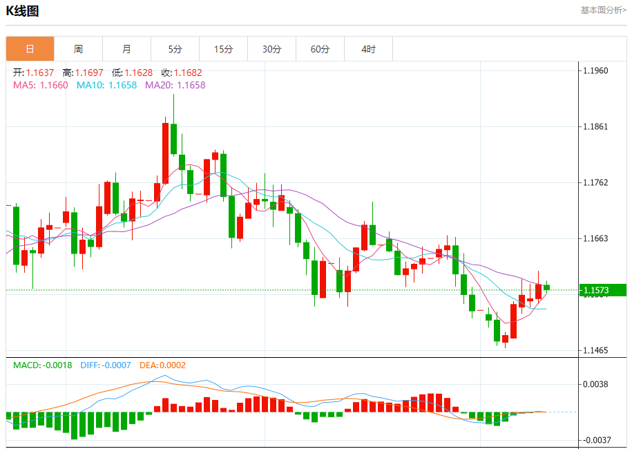 欧元/美元:截止北京时间21:20,欧元/美元下跌,现报1.1573,跌幅0.08%。纽市盘前,受关键阻力1.1595的稳定影响,欧元兑美元的价格在最后一个交易日下跌,在达到超买水平后,相对强度指标上出现了负面信号,试图获得看涨势头,这可能有助于其在EMA50上方交易所代表的动态支撑的持续中突破这一阻力,并在短期基础上处于看涨修正波的主导地位。