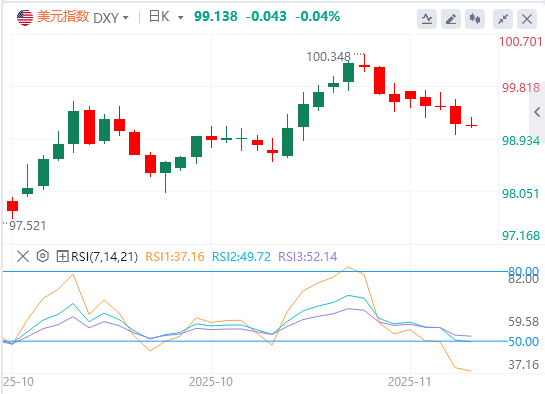 美元指数下跌,因为交易员准备迎接政府重新开放后积压的美国数据,他们预计这可能表明经济疲软。截至目前,美元报价99.13。