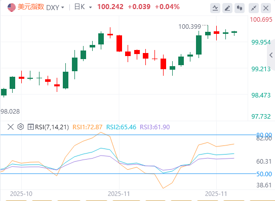 美联储—①理事沃勒:自美联储上次会议以来,现有数据显示变化不大,通胀并非大问题。我担心的是劳动力市场,我主张在12月降息。②美联储戴利:就业市场可能突然恶化,支持在12月降息。尽管戴利今年对货币政策没有投票权,但她很少在公开场合与美联储主席鲍威尔持不同意见。③市场出现美联储应等待非农公布,推迟12月议息时间的观点。④美联储12月降息概率升至八成。