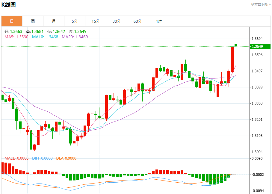英镑/美元:截止北京时间21:20,英镑/美元上涨,现报1.3652,涨幅0.03%。纽市盘前,GBPUSD在盘中的最后一个交易中保持上涨,其在EMA50上方交易所代表的动态压力仍在继续,加强了短期主要看涨趋势的稳定性和主导地位,其交易伴随着这一趋势的支持趋势线,注意到相对强度指标出现了积极信号,尽管其稳定在超买水平。