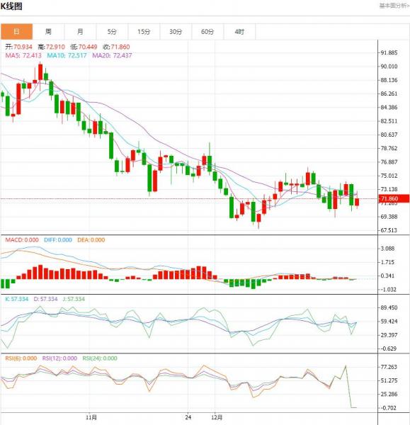 星期二(1月9日)油价涨0.41%。原油昨天(1月8日)整体走势仍很弱,在美国交易时段,WTI石油价格跌至70美元。