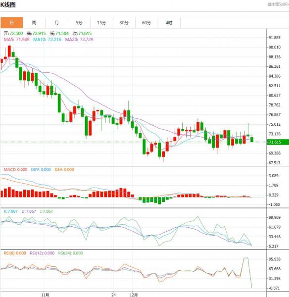 周一(1月15日),原油价格交投于72.80美元每桶附近。油价在新年之后上演了连续拉锯战,因上周五油价冲高之后并未守住涨幅,这意味着现阶段投资者对油价后市预期并未形成一致观点,多空双方各执一端。