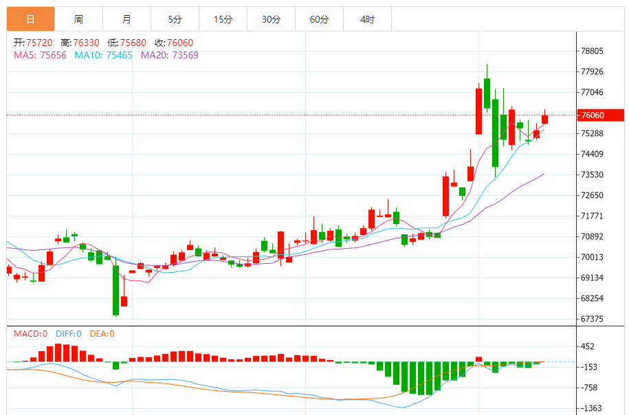 今日最新铜行情:76050