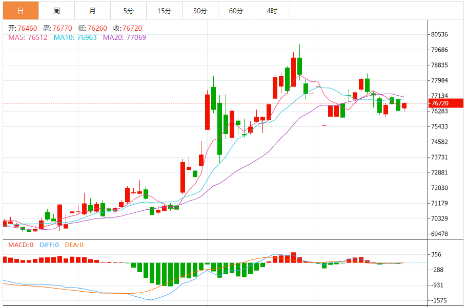 从波浪来看,白银以ABC三段式上下来回震荡,当前处于自下而上的运行结构之中,可尝试跟进操作。整体来看,白银走出大三角收敛的形态结构。从下方MACD指标来看,量能围绕零轴来回穿越,也体现出震荡。操作上建议逢低布局多单思路为主。