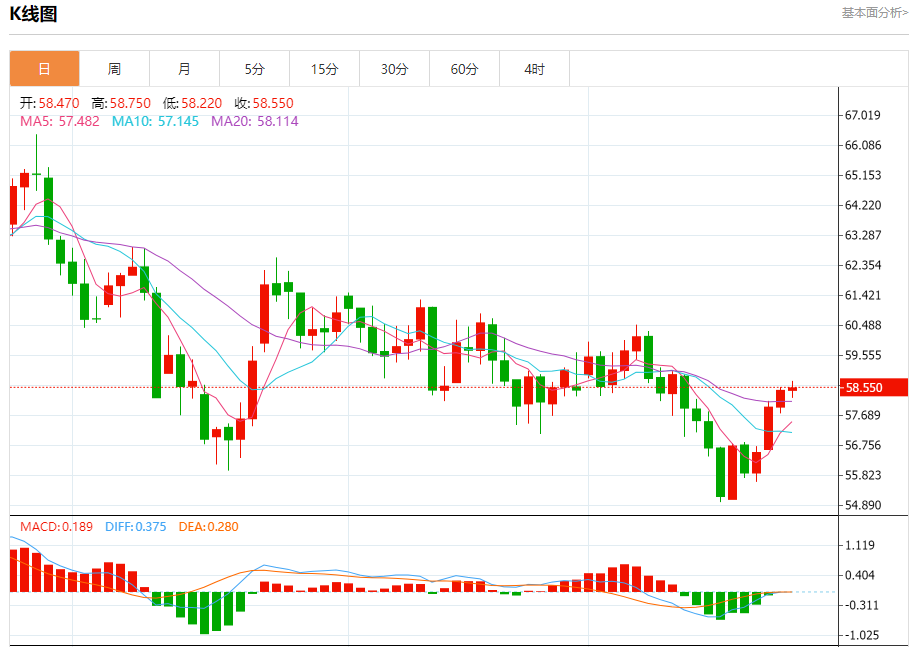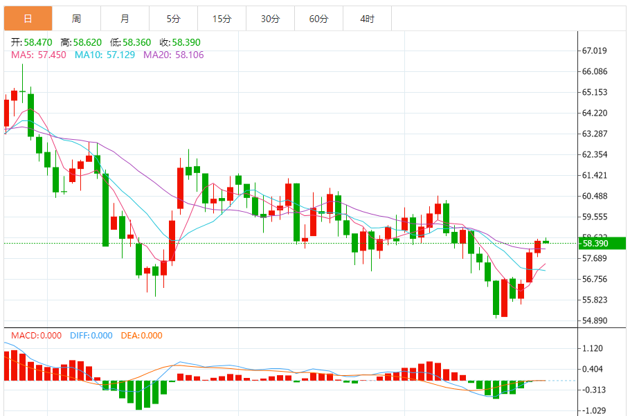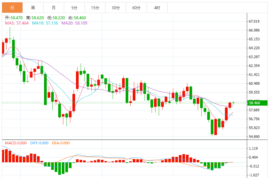 支撑:57.60美元,55.00美元,54.50美元,52.40美元