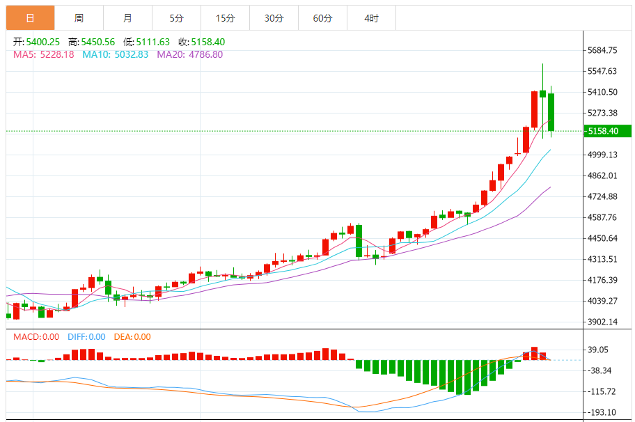 实时行情:伦敦金现报5002.61美元/盎司,日内跌幅8.00%,单日波动超600美元,上演“过山车”行情,日内一度冲高至5600美元附近,随后大幅跳水跌破5100、5000两道整数关口,最低触及4995.57美元/盎司;国内黄金T+D报1125.73元/克,日内跌幅4.75%,沪金主连跌5.58%至1127.96元/克,金店及银行金条价格同步回调,建设银行投资金条报1216.40元/克,跌幅3.12%。