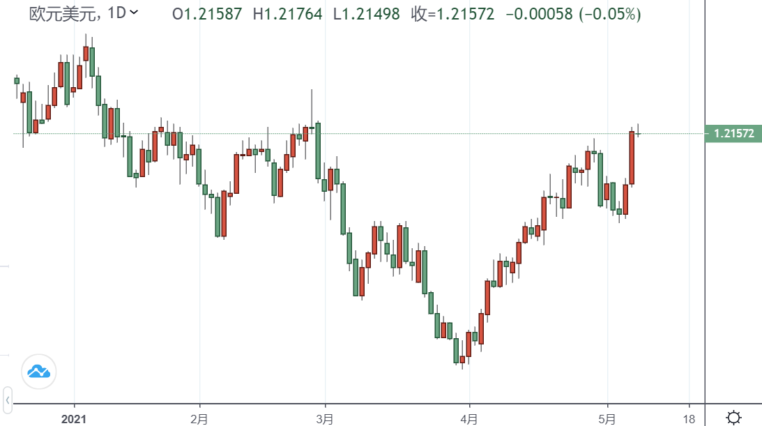 在美元不断上升的抛售压力推动下,该货币对近期的上行势头获得了进一步的动能,尤其是在上周五公布的4月非农就业数据大幅下跌(增加26.6万,预期为97.8万)之后。10年期德国国债收益率进一步上扬,再次测试-0.20%区域,或多日高点,这支持了欧元的良好人气。