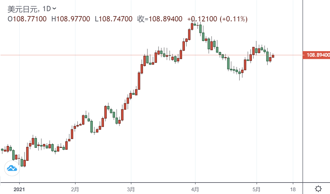 今日美元/日元汇率走势图分析及操作建议(2021/5/11)