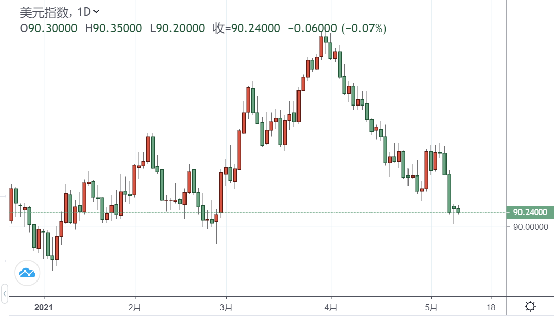 美元指数初步支撑位于90.04(5月10日低点),然后是89.68(2月25日低点)和89.20(2021年1月6日低点) 。而上行方面,突破91.06(100日移动平均线),将为升向91.43(5月5日高点)和91.72(200日移动平均线)打开大门。
