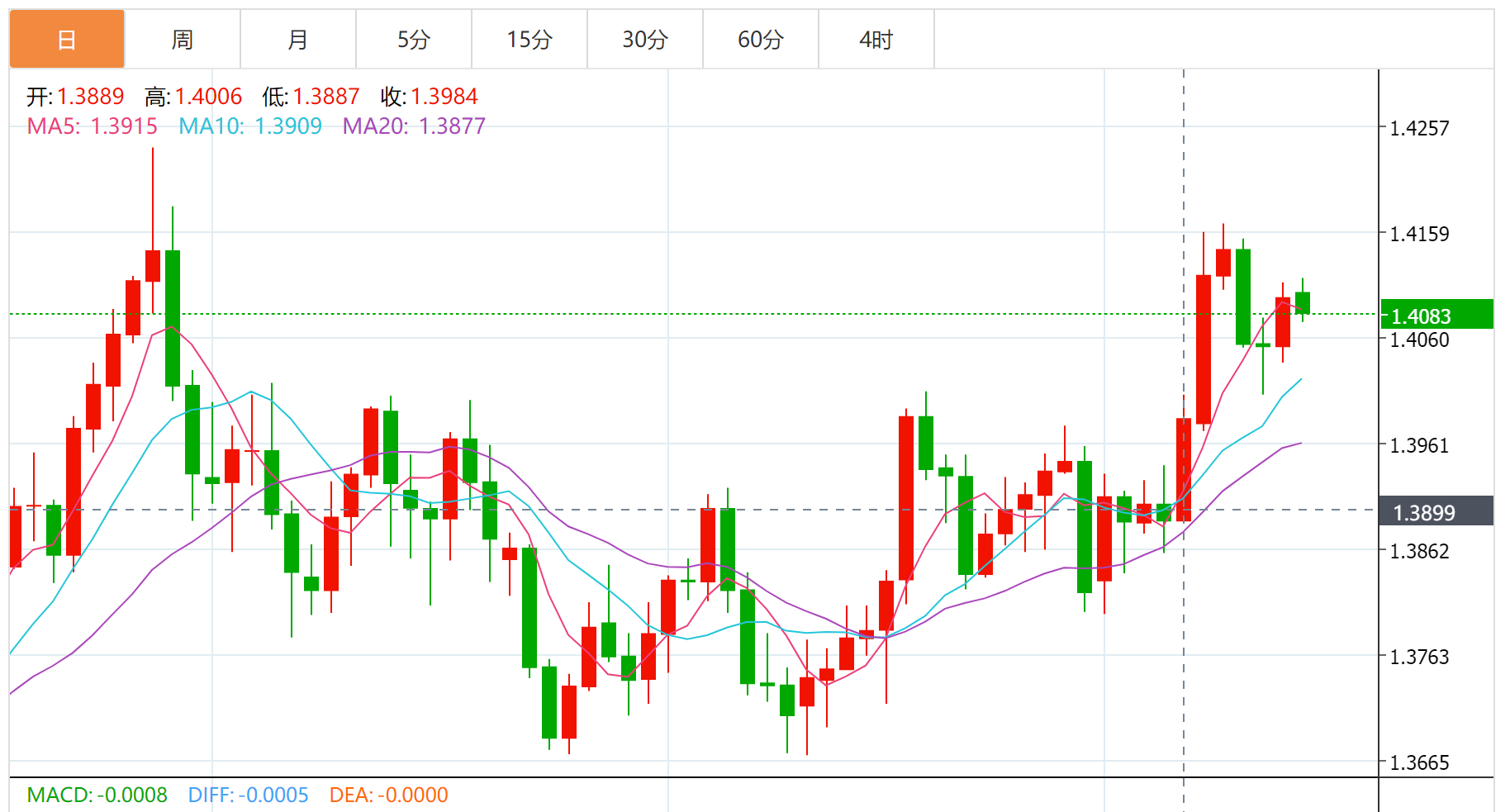 预计今日英镑 / 美元交投将位于支撑位 1.4000 以及阻力位 1.4140 之间。