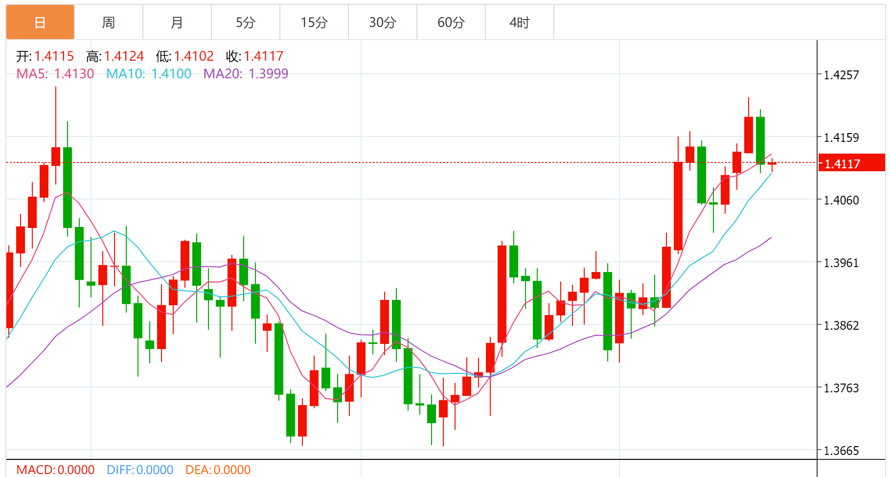 周四亚盘,英镑兑美元徘徊于20点区间内,周四欧市开盘前在1.4115获得买盘。虽然市场重新评估前一日美联储纪要以及英国首相约翰逊对解封评论引发的风险厌恶情绪,这导致英镑暂时止跌。