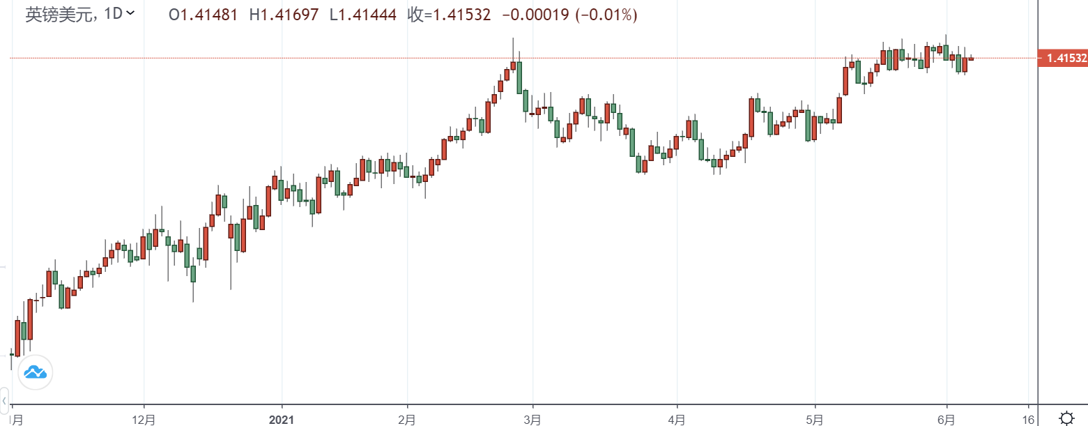 此外市场对英国可能不会在6月21日重新开放的担忧上升,因为印度新冠毒株病例增加,给汇价带来额外的下行压力。英国数据方面,焦点将是周五的4月英国国内生产总值(GDP),不出所料的话,商店和户外酒店在4月份重新开业将带来另一个不错的月度增长,重申积极的英国经济前景,将为英镑提供支撑,市场还将关注4月工业和制造业产出。