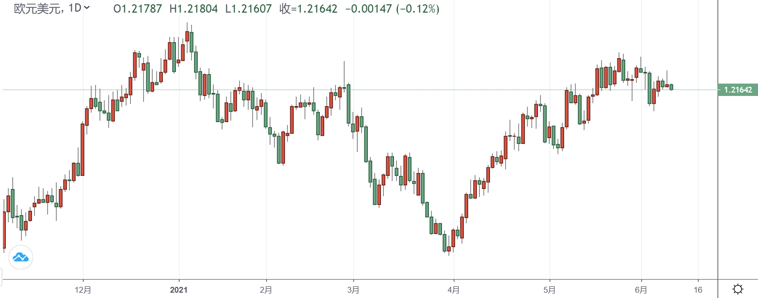 有几个原因可以解释为什么欧央行可能会让乐观的投资者失望,并且在这个时刻不采取任何紧缩措施。第一,自新冠肺炎危机以来的经济复苏依然脆弱。如果Delta毒株在欧洲大陆迅速扩散,可能会出现封锁或放松措施延迟的情况,从而对经济构成挫折。其次,当总体通货膨胀达到央行的目标时,核心CPI保持温和,5月份为0.9%。拉加德和她的同事们认为经济迅速重开之路崎岖且能源价格上涨,因此认定通胀是暂时的。因此,欧央行最有可能维持利率不变,这将打压欧元。