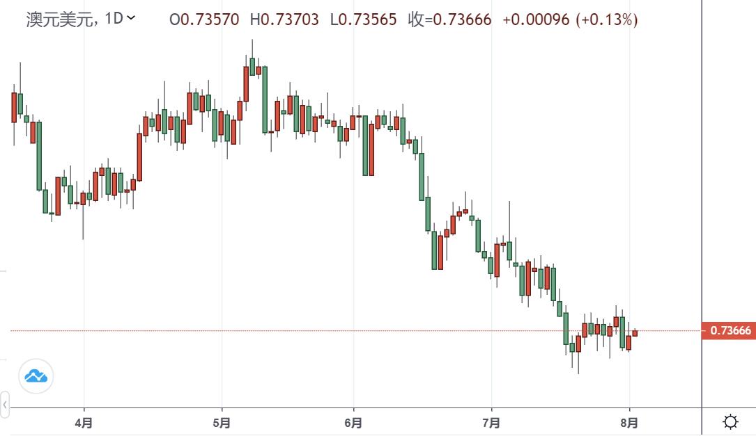 总体而言,市场人士预计澳洲联储将释放鸽派立场,这应会令澳元承压。澳元兑美元走低,交易低于0.7400水平。今年7月,该货币对创下全年新低,为0.7288。