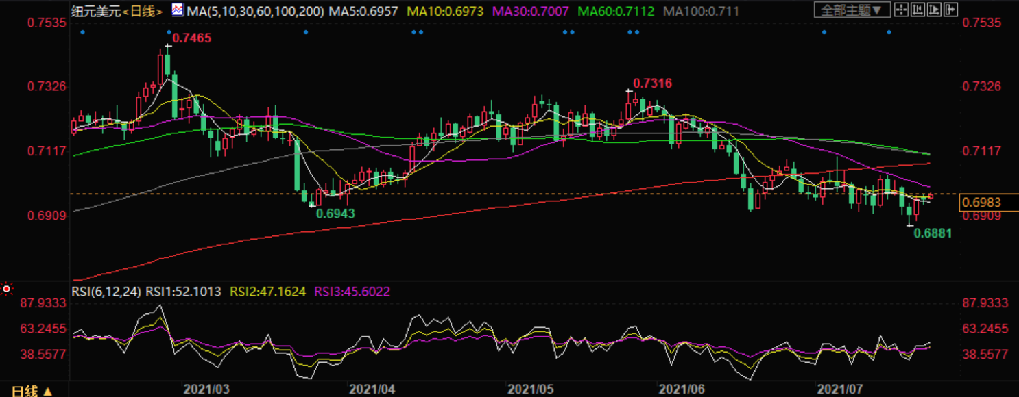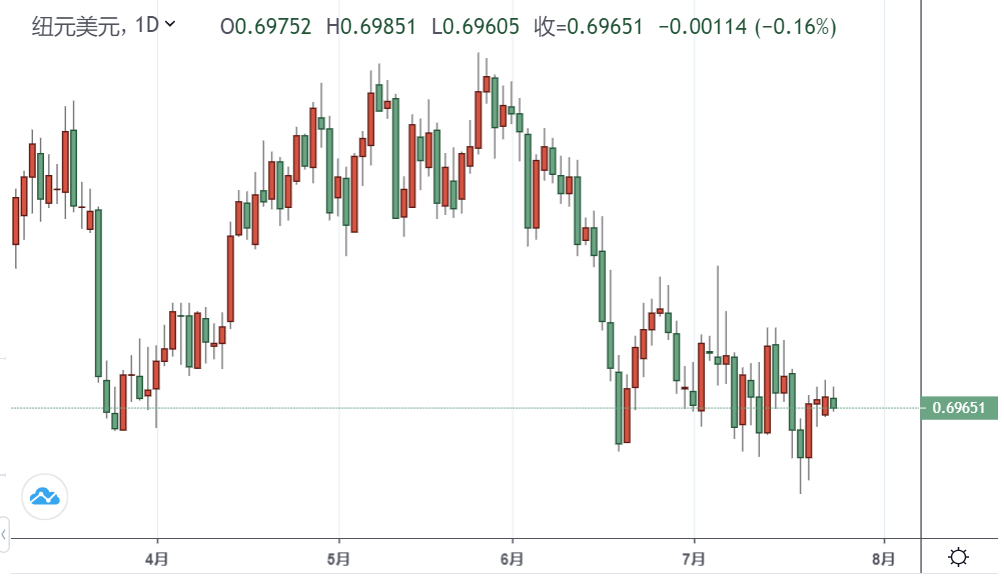 周一,纽元兑美元在亚洲市场以更高的价格开始了新的交易周。过去四个交易日,纽元货币对似乎都难以突破0.7000大关。 截至目前,纽元兑美元汇率为0.6981,当日上涨0.14%。 6月贸易平衡数据收窄至2.614亿美元,低于上年同期的4.726亿美元,新西兰元并未受到影响。6月贸易数据几乎减半,因进口超过出口,主要是由于汽车、