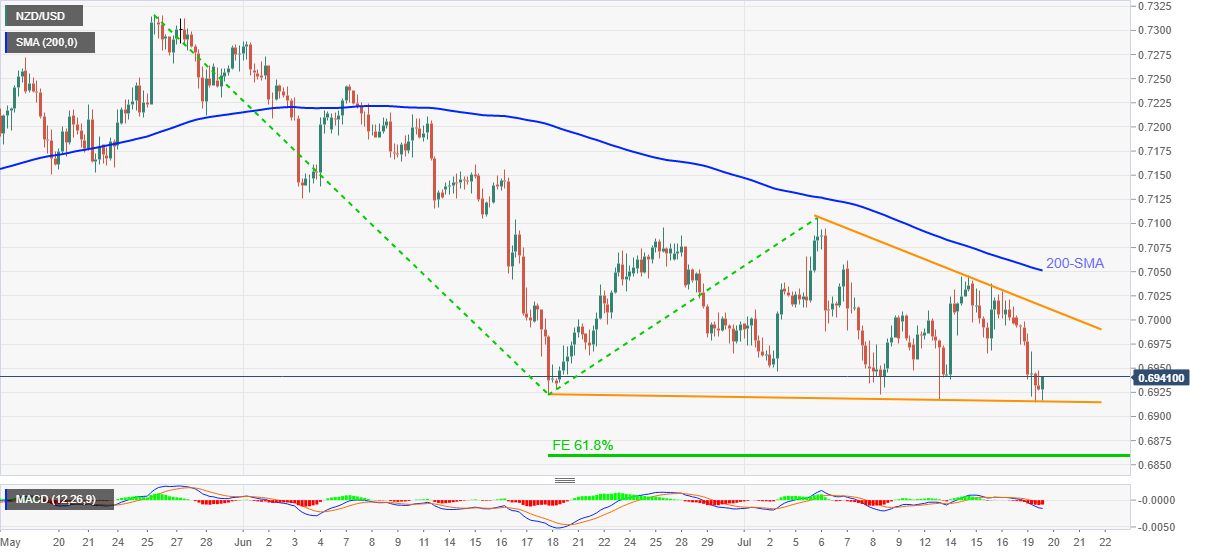 周二早盘,纽元兑美元从一个月来的支撑位出现180度大转弯,买入价在0.6910附近回升,盘中下跌0.07%。不过,应该注意的是,两周前的阻力线和看跌的ACD指标仍对卖方有利。 因此,在跌破0.7015附近的短期阻力位之前,最新的修正性回调应该不那么令人担忧。同样,200-A围绕0.7050作为上行过滤器。 如果纽元兑美元多头突破