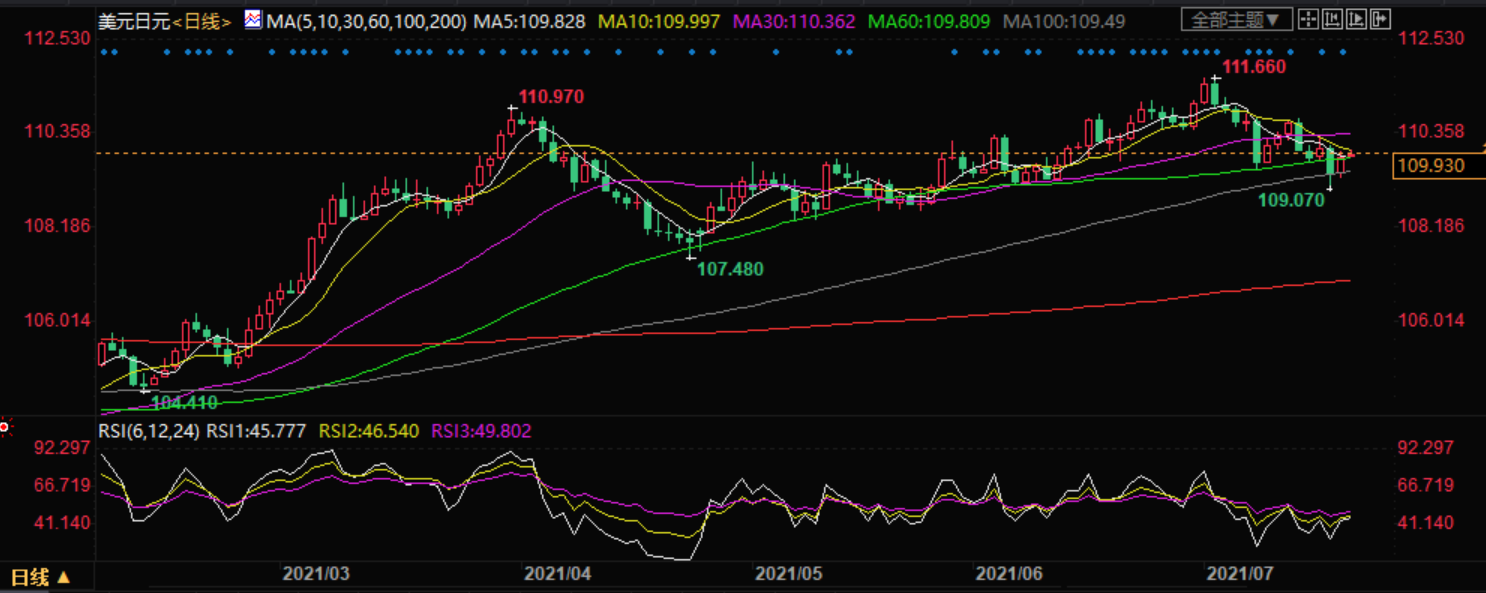 周三欧盘,美元兑日元正在巩固近期的复苏,此前在亚洲交易中几乎测试了110.00水平。 由于疫情病毒变种的担忧日益逼近,市场再次转向避险,美元周围出现了新的购买兴趣,这为日元提供了支撑。 根据日移动均线观察,现货反弹似乎受到水平的50日移动均线(DA)109.96的限制。 若要确认本周稍早触及的两个月低点109.06的多