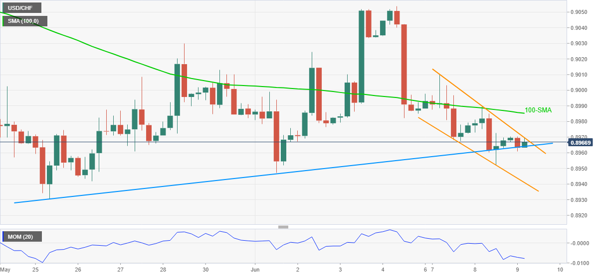 美元兑瑞郎突破了每周下行通道突破,而随着欧洲交易员准备开市,买入价回升至0.8970。 瑞郎对在亚洲市场开盘后下跌,随后从5月25日开始上升的支撑线反弹。 鉴于疲软的势头线和0.8970附近的强劲阻力,美元兑瑞郎可能会出现回落,重返0.8964附近的支撑位。 然而,应该注意的是,0.8965的下行突破将有一条崎岖的道路向南