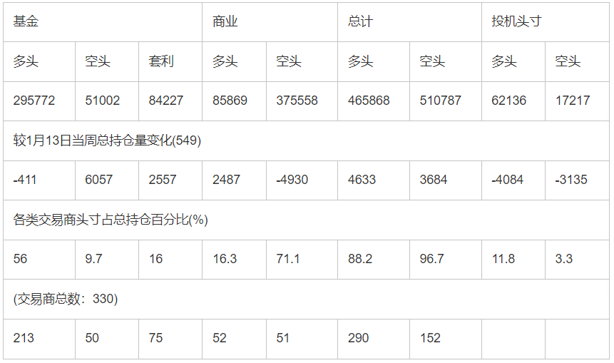 截止1月20日当周COX(纽约商品期货交易所)黄金期货分类持仓报告: 合约单位:(100金衡盎司的合同)总持仓量:528004