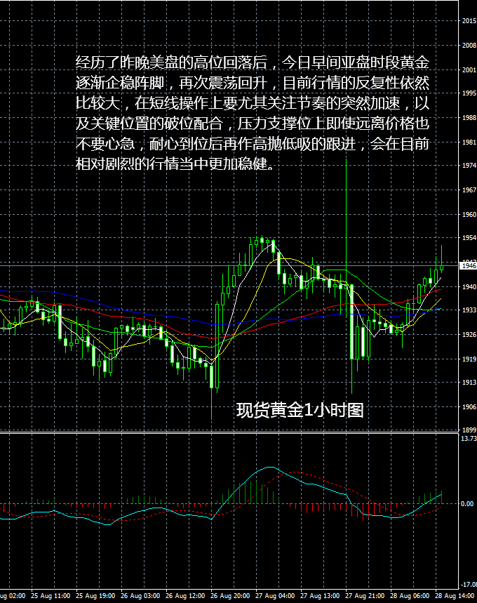 现货黄金市场行情现状简述:现货黄金昨日亚盘出现小幅回落后,逐渐进入节奏变慢的阶段,欧盘期间没有太大的波动,这是由于市场当时等待晚间的全球央行年会,到了美盘后,随着鲍威尔讲话的新政策出台,市场马上出现剧烈的反应,两小时内波动上下幅度超过100美元,所以今晚依然需要重点留意。美元方面,在低利率的承诺下,继续受压,目前位于93下方运行。