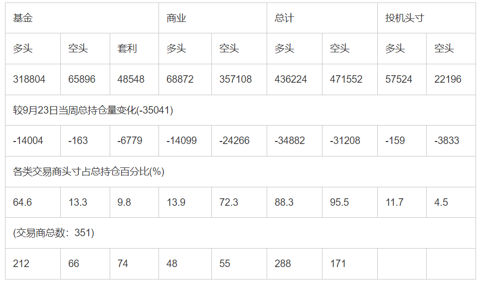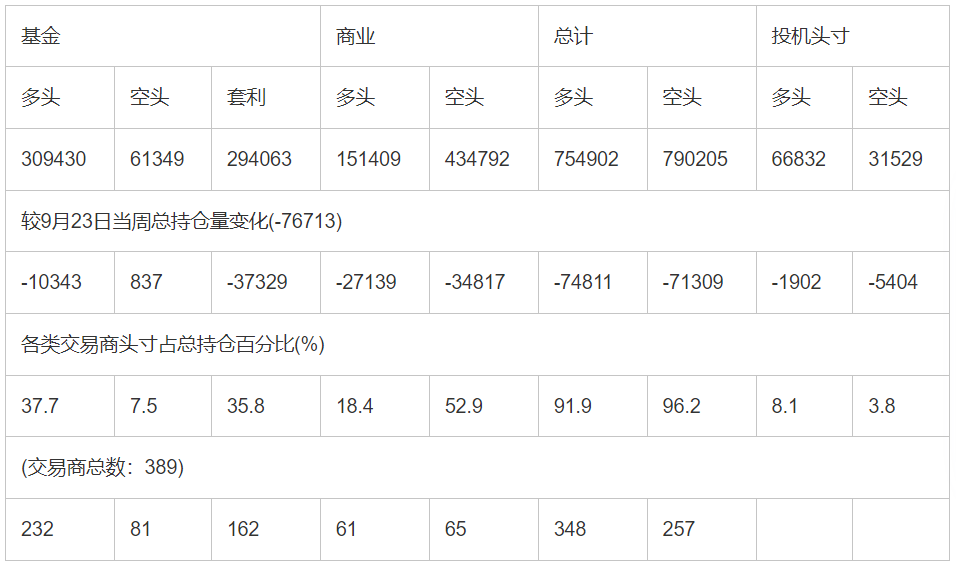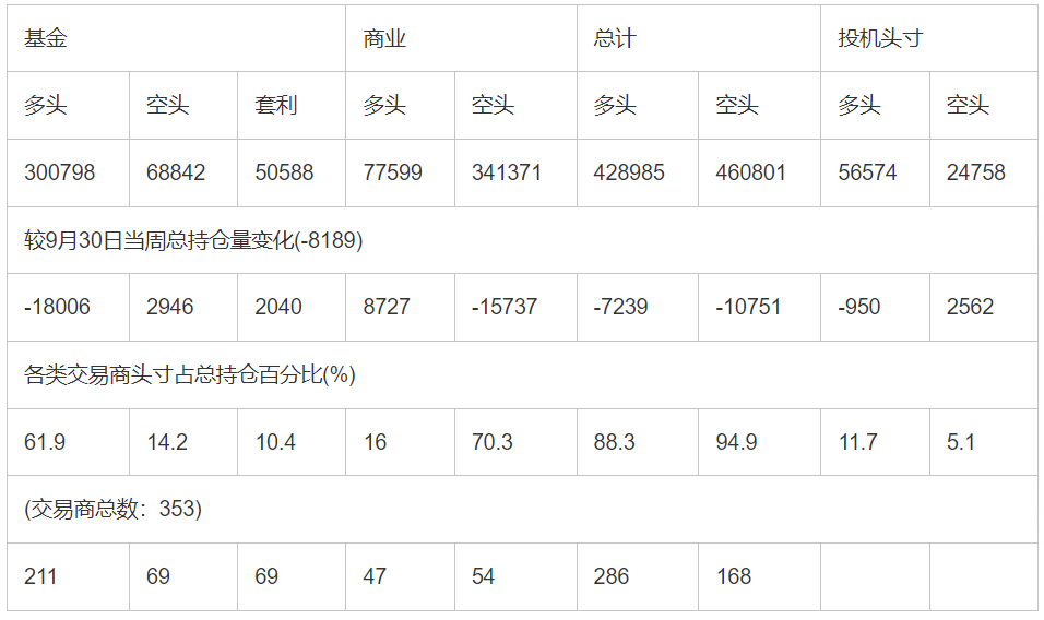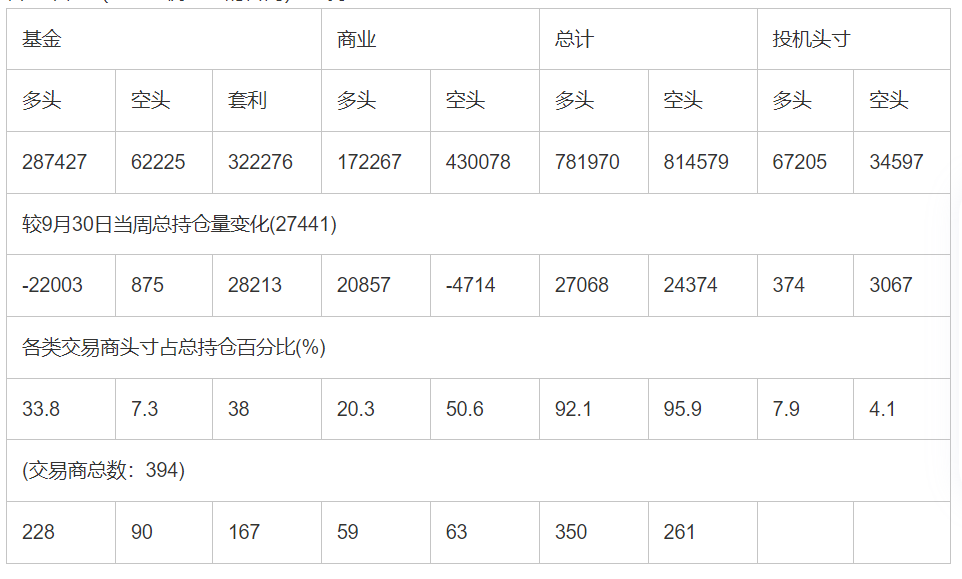 截止10月7日当周COMEX(纽约商品期货交易所)黄金期货和期权分类持仓报告: