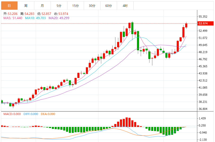 因此,在隔夜波动高点(53.65-53.70美元区域附近)之外,一些后续走强势,收复54.00美元的整数,看起来是一种明显的可能性。如果持续走强,突破后者将为延续重新测试10月份触及的历史峰值54.85美元附近的积极势头奠定基础。