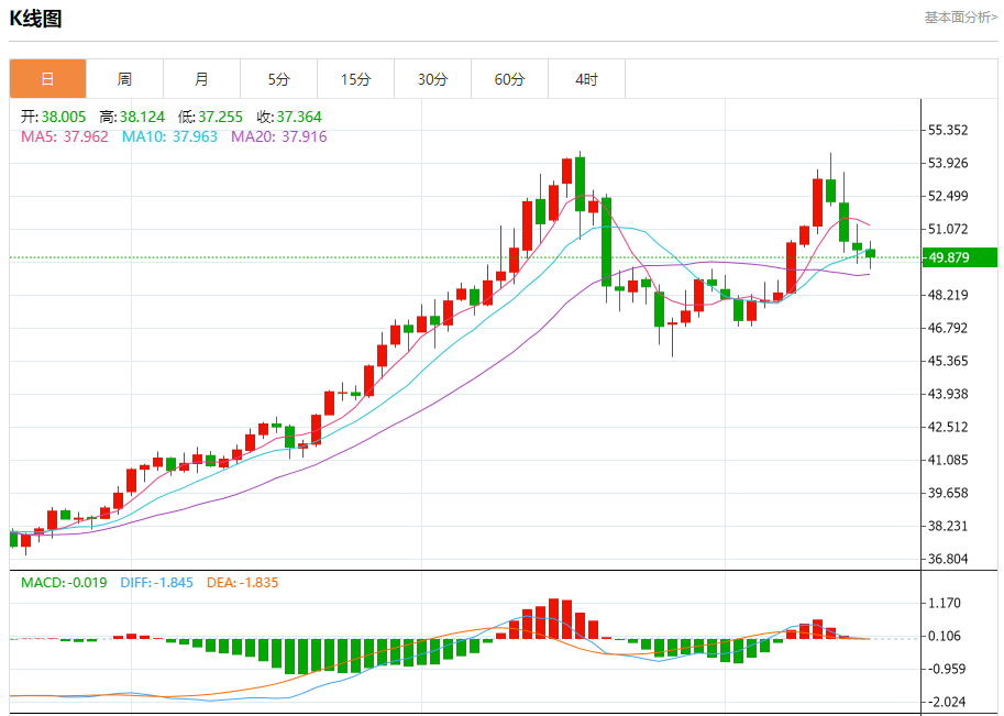 周二盘中,现货白银报49.887,跌幅0.59%。