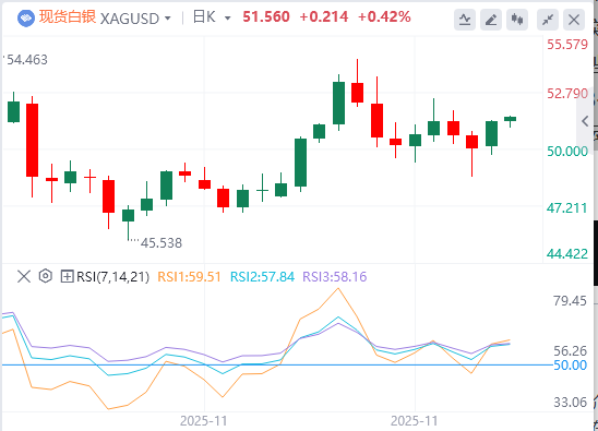 与此同时,图中的相对强弱指数(RSI)保持在中线以上,表现略显看涨,符合上涨趋势。这强化了趋势改善,有利于在XAG/USD保持上行基准之上时的上行空间延伸。白银似乎有望突破52.00美元大关,进一步攀升至上周的摆动高点,约52.45美元区间,随后目标是重新夺回53.00美元的整数。