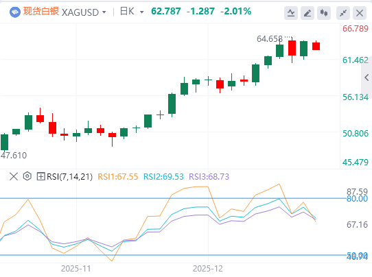 白银可能加速下跌至62.00美元整数,并进一步延伸下行轨迹,直至61.45美元附近下一个相关支撑,最终抵达上周五的60.80美元区间。这首白金属最终可能会拒绝测试60美元的心理门槛。