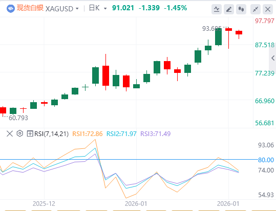 作为一种非息资产,白银失去了光彩,因为周四公布的美国初次失业救济申请数据强化了美联储未来几个月维持利率停滞的可能性。根据芝加哥商品交易所集团的FedWatch工具,美联储基金期货仍预计美国央行在1月27日至28日会议上维持利率不变的概率约为95%。美联储基金期货将下一次降息预期推迟至6月,反映出劳动力市场状况走强及政策制定者对通胀粘性问题的担忧。