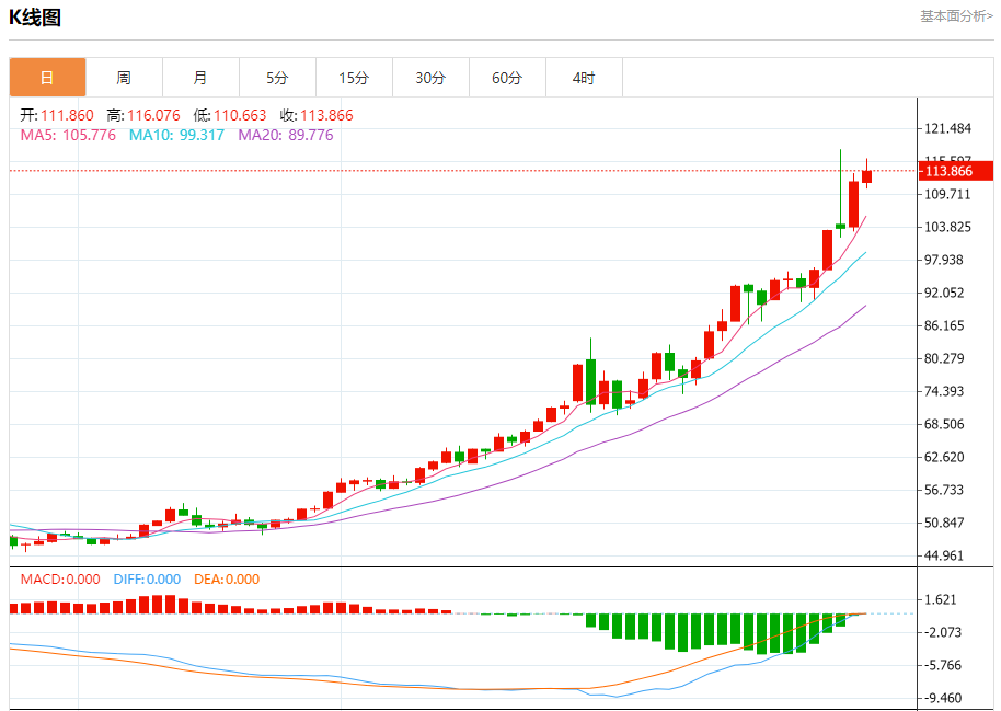 周三盘中,现货白银报113.440,涨幅1.24%。