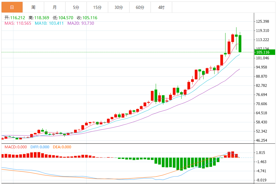 周五(1月30日),现货白银目前位于105.274美元/盎司附近,跌幅为8.77%。