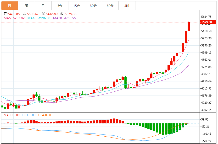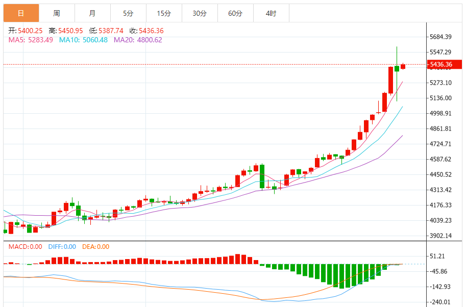 基本消息面 现货黄金在美盘末转涨,收复逾300美元的历史最大单日跌幅,最新报5418美元/盎司。现货黄金在整个周四交易时段中,于亚盘初创下了5596.7美元的历史新高,并在美盘中跌至5105美元,使单日振幅扩大至近500美元。此外,在美盘的一波下跌中,现货黄金部分1分钟K线出现下跌超100美元和上涨超100美元的行情,