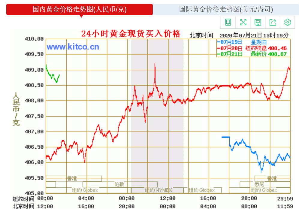 上海黄金交易所黄金T+D 7月21日(周二)晚盘收盘上涨0.34%报399.62元/克; 上海黄金交易所白银T+D 7月21日(周二)晚盘收盘上涨2.67%报4657.0元/千克。