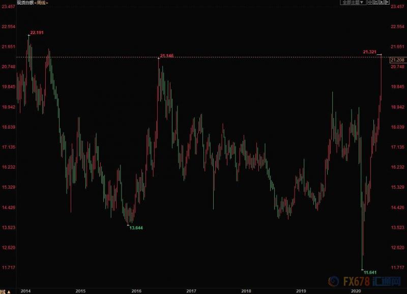 贵金属在闪闪发光,主要由于对冠状病毒疫情的持续担忧,以及全球推出更多经济刺激措施的前景。此前澳大利亚维多利亚州的新感染病例激增,刺激了对避险资产的需求。欧盟领导人商定了前所未有的刺激方案,希望推动经济摆脱衰退。白银广泛用于从太阳能电池板到电子产品等各种生产领域,也受到了供应担忧和对工业需求反弹预期的提振。