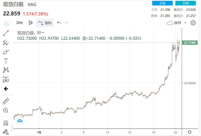 (现货白银30分钟走势图)