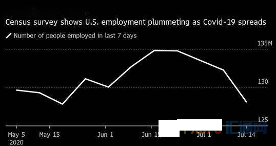 美国人口普查局一项调查显示,7月份就业人数将急剧下降,当月第一周到第二周骤减410万。Yelp表示,截至7月10日,Yelp网站上列出的因疫情关门的美国企业中一多半为永久性停业