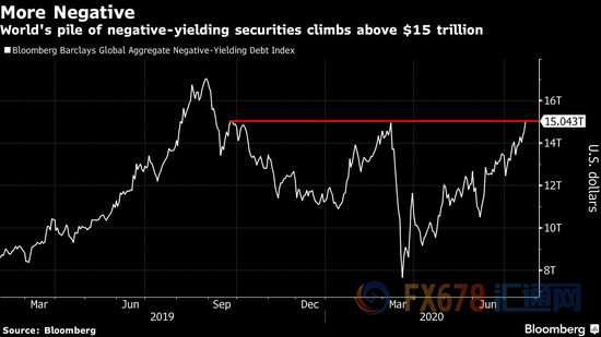 全球负收益率债券规模回升到15万亿美元以上,达到近10个月以来最高水平。