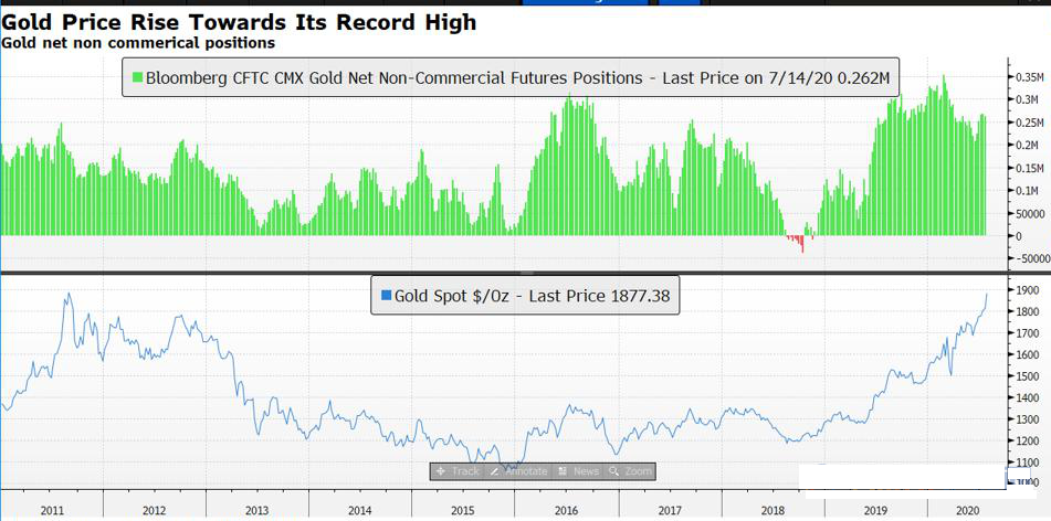 由于劳动力市场复苏是经济复苏的前兆,随着美国的就业市场出现恶化的迹象,这打击了市场乐观情绪,因此推动黄金续刷9年高位,最高触及1898.34美元,逼近1900美元关口。