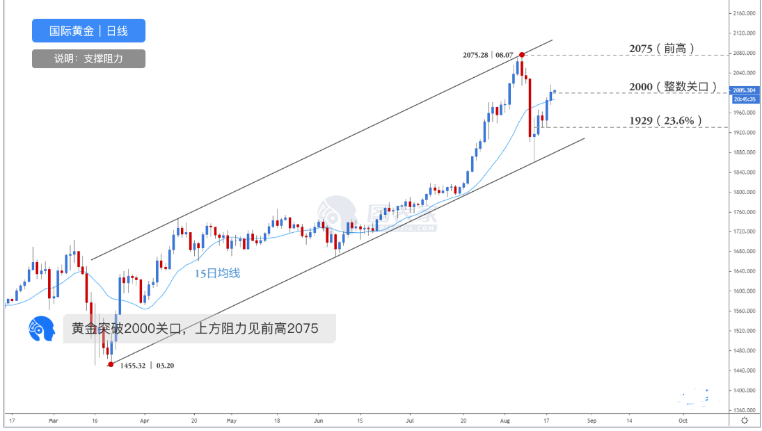 黄金守住1978支撑后再次站上2000关口,若2010破位则见2050。