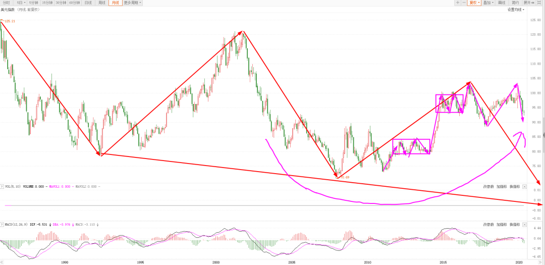 从技术面看,美元接下来大趋势很可能要复制2002年之后的走势,一轮大级别的贬值可能即将到来,再次刷新美元指数新低都是有可能的。