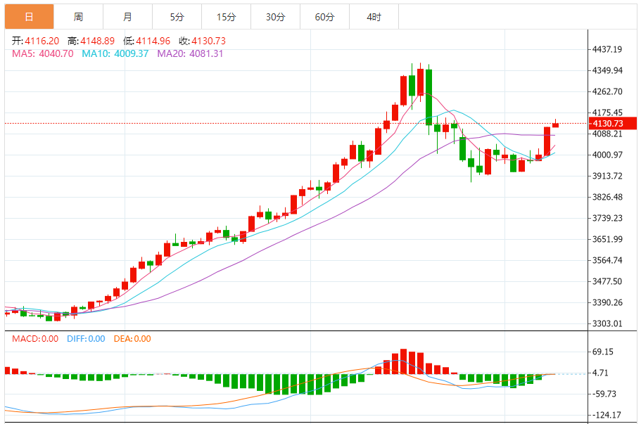 周一(11月10日)纽约尾盘,现货黄金涨2.84%,报4114.96美元/盎司,日内持续走高,交投于3998.67-4115.84美元区间。COMEX黄金期货涨2.76%,报4120.60美元/盎司。