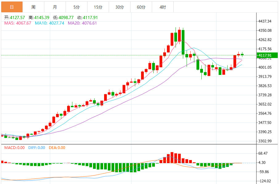 周三(11月12日),现货黄金震荡微涨,目前交投于4143美元/盎司附近,守住了前几个交易日涨幅。