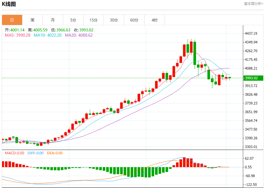 日线图显示,伦敦金自10月下旬开启回调以来,已形成清晰的下降趋势线,5日均线与10日均线形成死叉后持续向下发散,当前5日均线(4052美元)已成为短期强阻力位。MACD指标维持死叉状态,绿色动能柱较前一交易日进一步放大,显示空头主导格局未发生根本改变。RSI指标从前期超买区域回落至46.35,跌破50中轴位,表明市场情绪已从过热转向中性偏空,但尚未进入超卖区间,仍有调整空间。