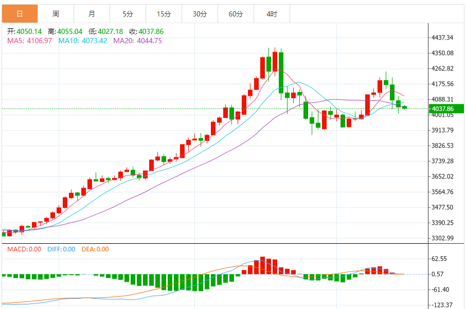 周二(11月18日),现货黄金目前位于4038.41美元/盎司附近,跌幅为0.18%。
