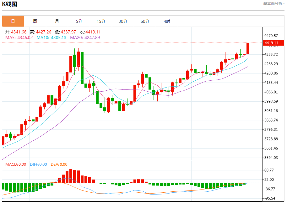 中期阻力锁定4480-4500美元区间。4500美元作为重要整数关口,具有极强的心理预期意义,在当前牛市氛围下,整数关口往往成为资金博弈的核心锚点。同时,该区间对应技术面趋势通道上沿,从日线级别趋势延伸来看,4480美元是下一关键量能测试位,突破需伴随成交量显著放大,否则易引发深度回调。