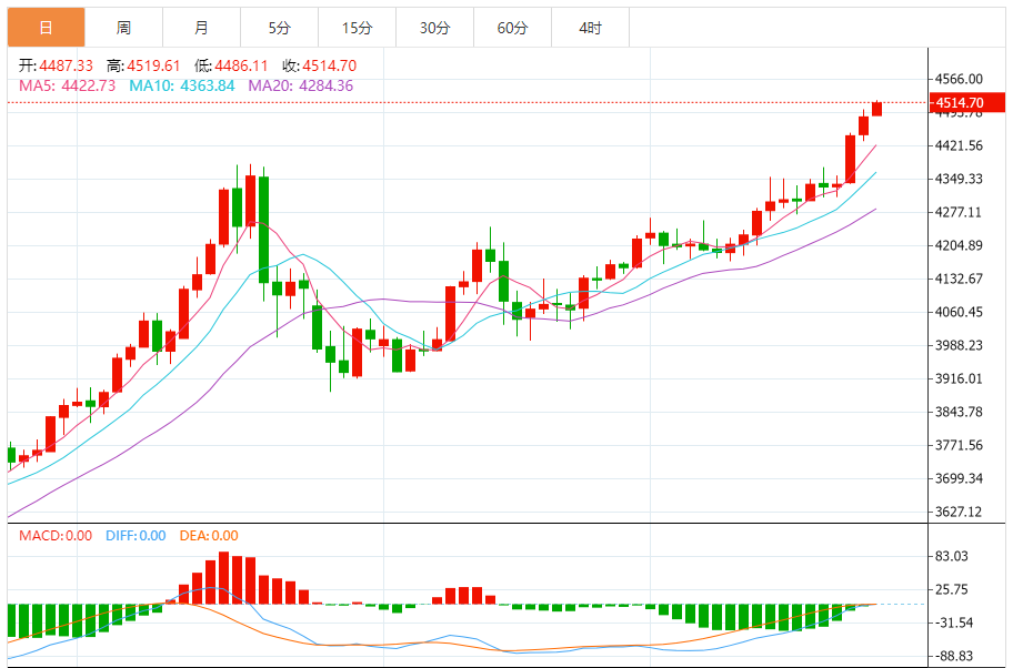 周三(12月24日),现货黄金目前位于4513.63美元/盎司附近,涨幅为0.65%。