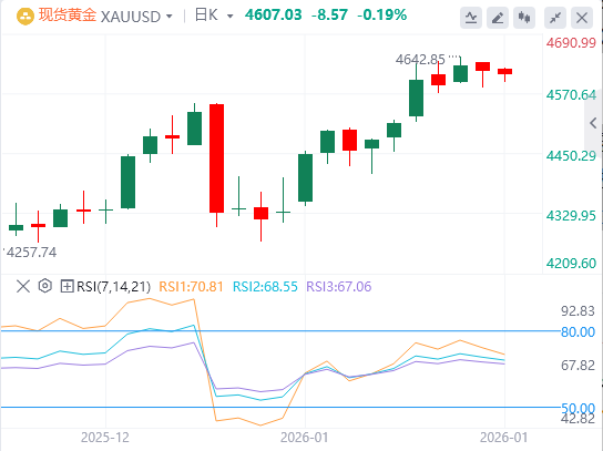 1月16日,黄金收复了每日跌幅,周五交易约4610美元。然而,随着伊朗地缘政治风险暂时缓解,避险需求减少,黄金价格走低。